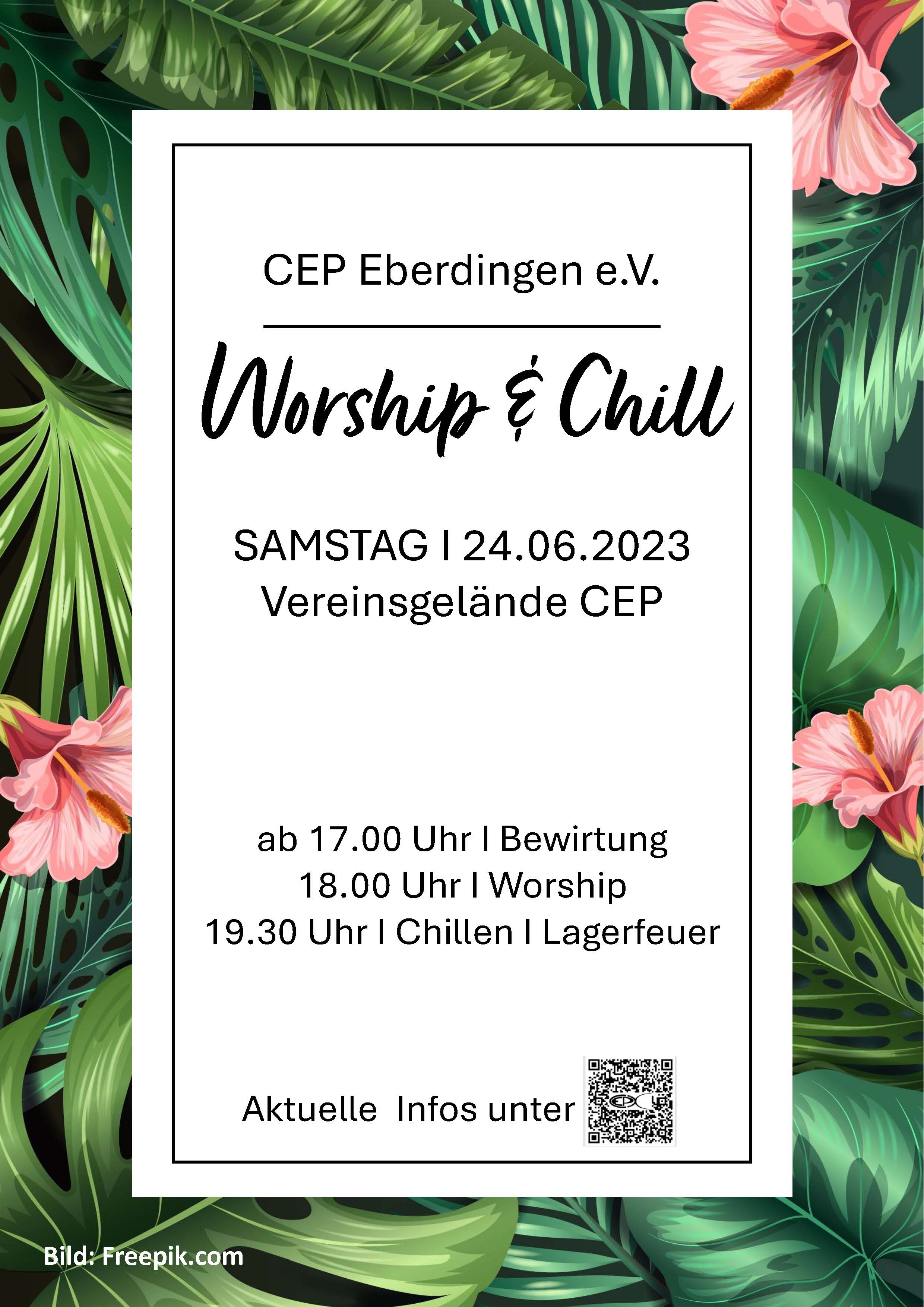 Am Samstag, 24.06.2023 gibt es bei uns wieder ein Worship & Chill Event auf dem CEP Platz